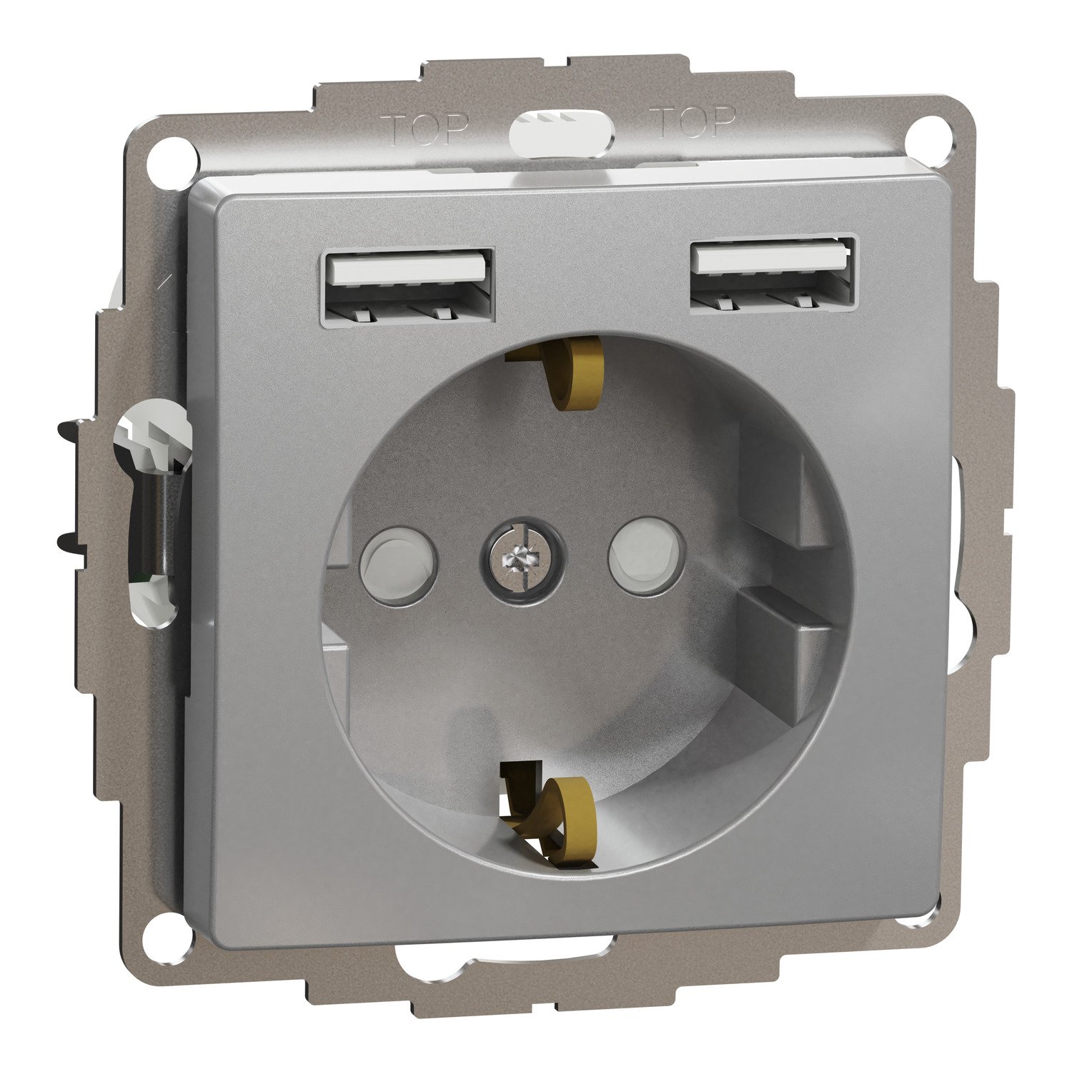 Kištukinis lizdas su įžeminimu + 2×USB-A Schneider Electric Sedna Design SDD113052 (aliuminis)