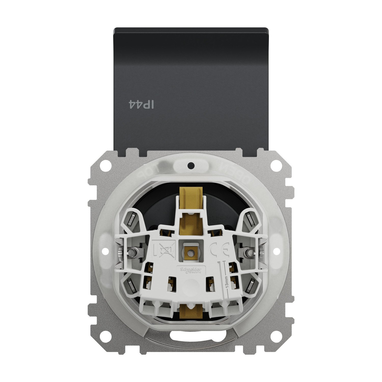 Kištukinis lizdas su įžeminimu ir dangteliu Schneider Electric Sedna Design SDD214024 (antracitas, IP44)