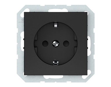 Kištukinis lizdas su įžeminimu ir užsklanda Vilma, be rėmelio, juoda matinėRP16-002-22 QR 1000
